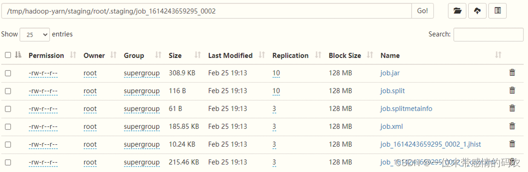 如下图所示,运行 MapReduce 时,上传 Job 资源至 HDFS 目录