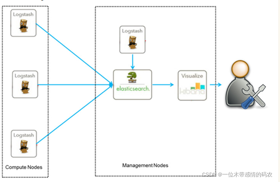 - Logstash 基于 Java 开发,是一个数据抽取转化工具。一般工作方式为 c/s 架构,client 端安装在需要收集信息的主机上,server 端负责将收到的各节点日志进行过滤、修改等操作在一并发往 elasticsearch 或其他组件上去。