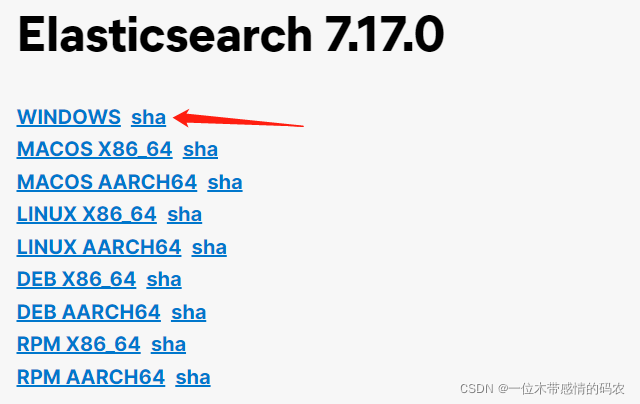 下载地址:https://www.elastic.co/cn/downloads/past-releases#elasticsearch