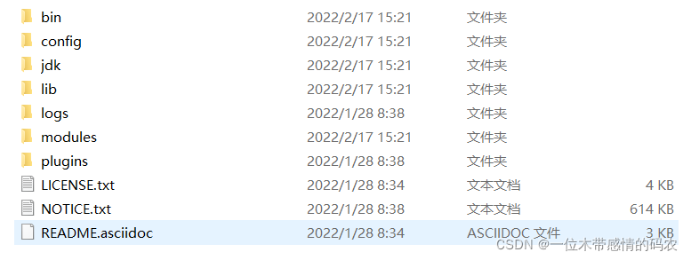 Windows 版的 Elasticsearch 的安装很简单,解压即安装完毕,解压后的 Elasticsearch 的目录结构如下: