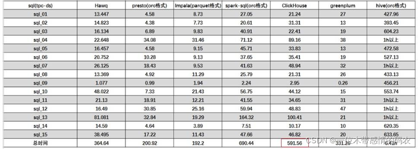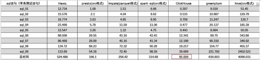 结论:ClickHouse 像很多 OLAP 数据库一样,单表查询速度优于关联查询,而 ClickHouse 的两者差距更为明显。