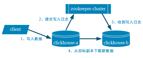 ClickHouse 的数据副本机制是表级别的,不是整个服务器级的,也就是说只针对表进行复制,一个数据库中可以同时包含复制表和非复制表。副本机制对于 select 查询是没有影响的,查询复制表和非复制表的速度是一样的。而写入数据时,ClickHouse 的集群没有主从之分,大家都是平等的。只不过配置了复制表后,Insert 以及 Alter 操作会同步到对应的副本机器中。对于复制表,每个 Insert 语句会往 Zookeeper 中写入十来条记录,相比非复制表,写 Zookeeper 会导致 Insert 语句的延迟时间略长。但是,在 ClickHouse 建议的每秒不超过一个 Insert 语句的执行频率下,这个延迟时间不会有太大的影响。