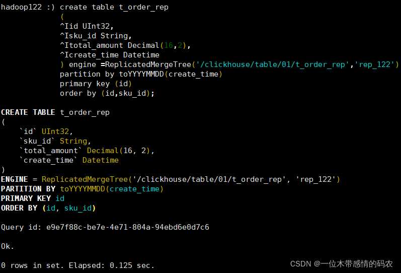 ) engine =ReplicatedMergeTree('/clickhouse/table/01/t_order_rep','rep_122')