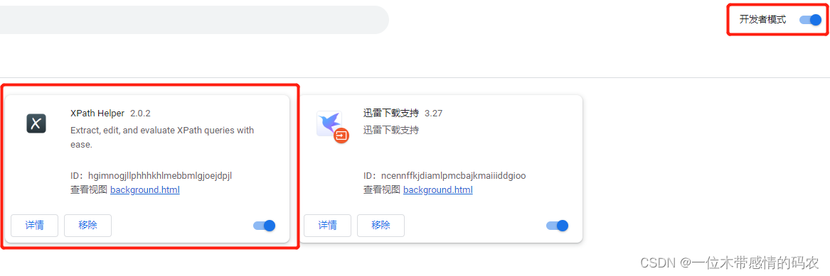 - 拖拽 Xpath 插件到扩展程序中(需开启开发者模式);