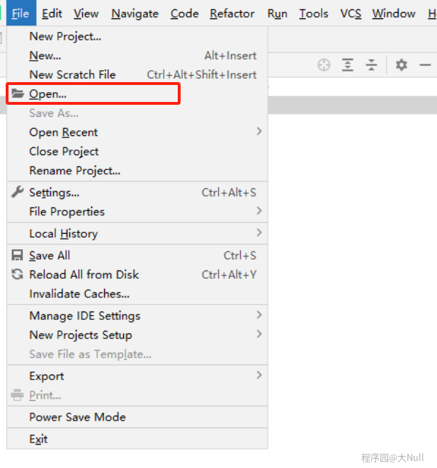 在 PyCharm 中点击File,选择Open,找到刚刚创建的项目并打开: