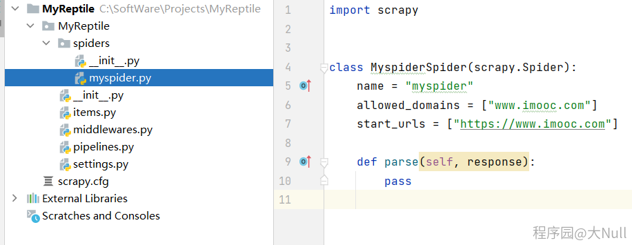 执行完毕之后,spiders文件夹下就生成了一个myspider.py文件: